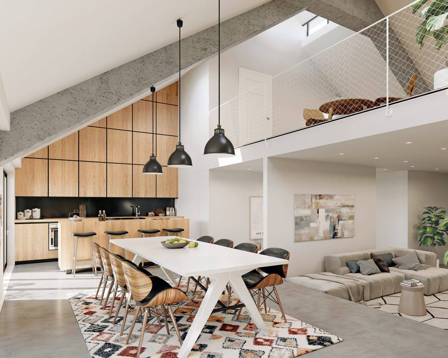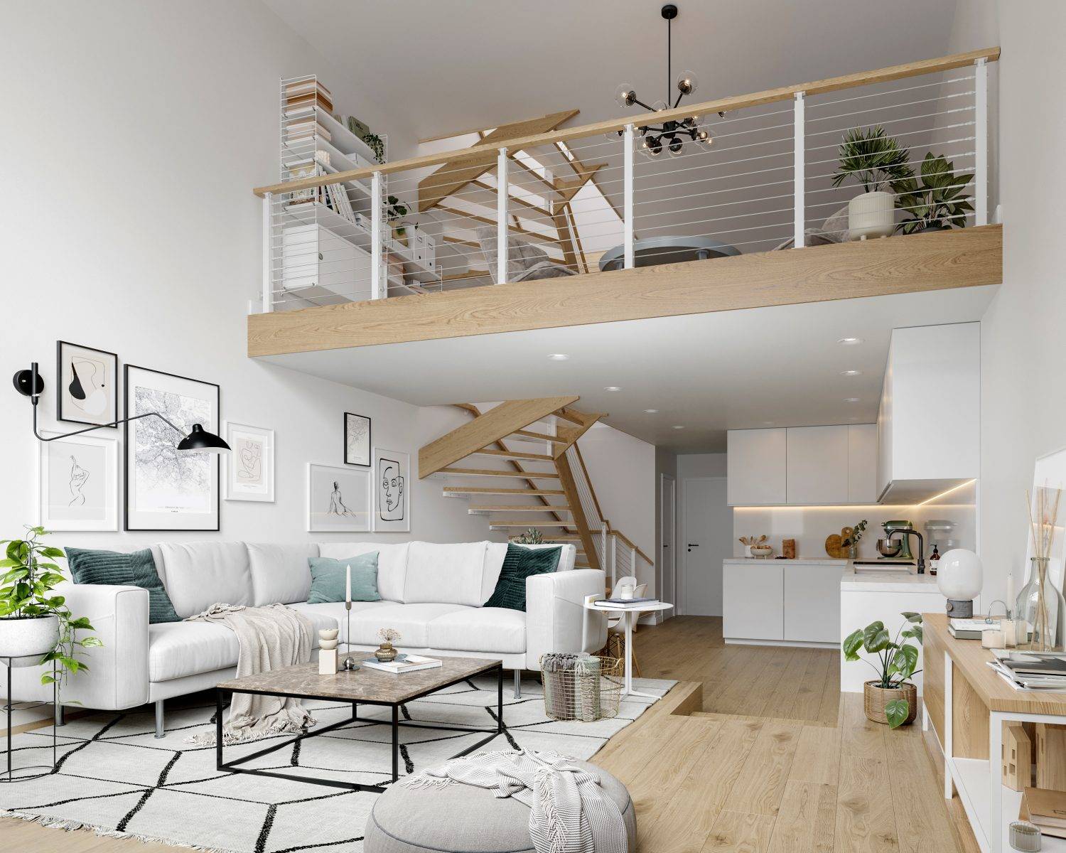 Große Fenster, heller Parkettboden und Raumhöhen von 2,5 bis zu 7 Meter betonen die Weite der Räume und lassen den Blick über das Quartier und in die Ferne schweifen. Alle Wohnungen erfreuen die Sinne mit einer überdurchschnittlich hochwertigen Materialisierung.